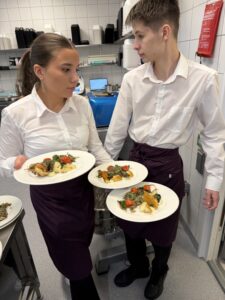Raumalaget fikk et ekstra oppdrag fra TINE da de trente til finalen. De fikk prøve seg som kjøkkensjefer, og resten av klassen måtte trå til da antall spisegjester ble tredoblet. Med på utflukten var også tidligere elev og sølvvinner i TINE Matcup og Norgesmester i kokkekunst, Håvard Onsøyen.