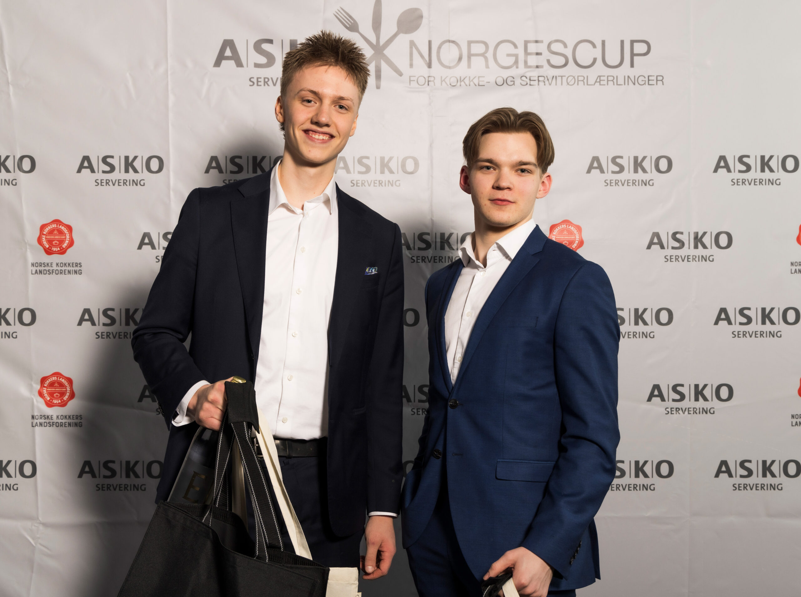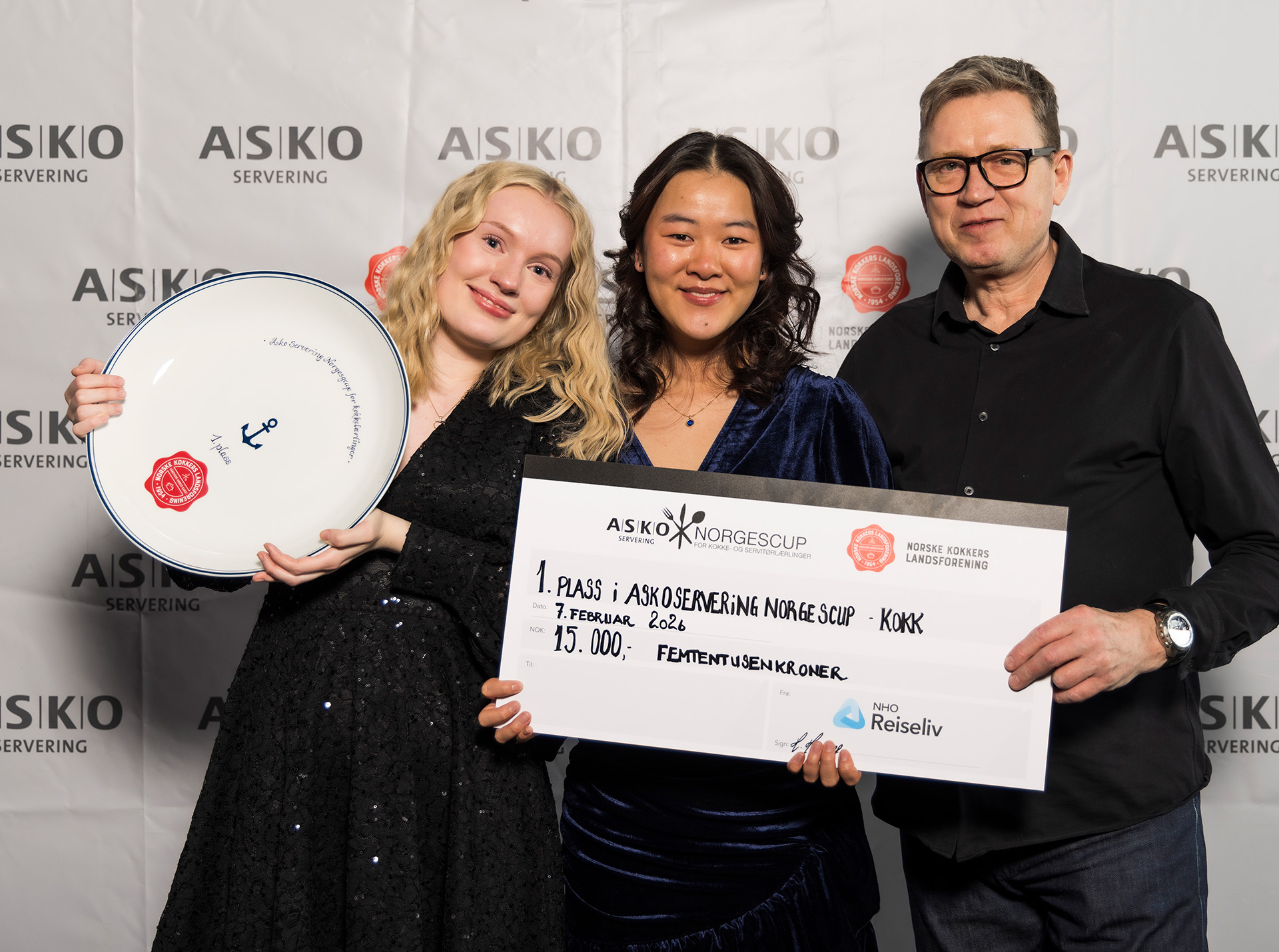 Vinnerne av ASKO Servering Norgescup for kokk- og servitørlærlinger 2026 ble Eline og Kamilla fra Hurtigrutens kokkelag, og Markus og Edmund fra Vaaghals servitørlag!